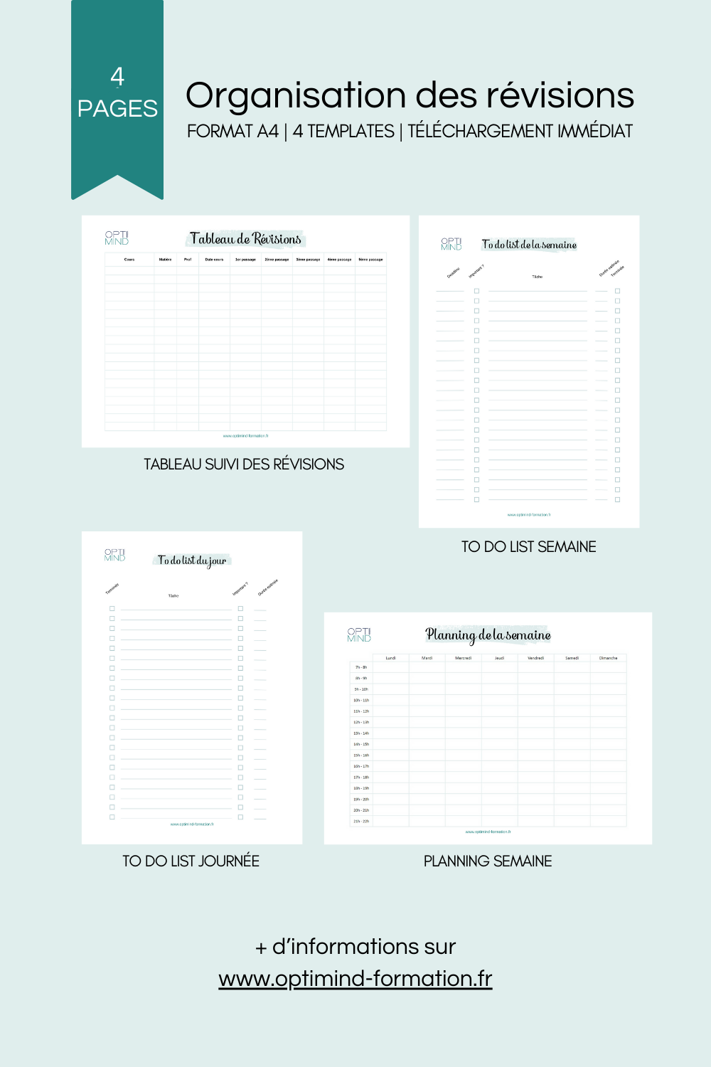 Accéde aux 4 templates indispensables qui te permettront de mieux organiser tes révisions, d'obtenir de meilleures notes et de réussir ton année !